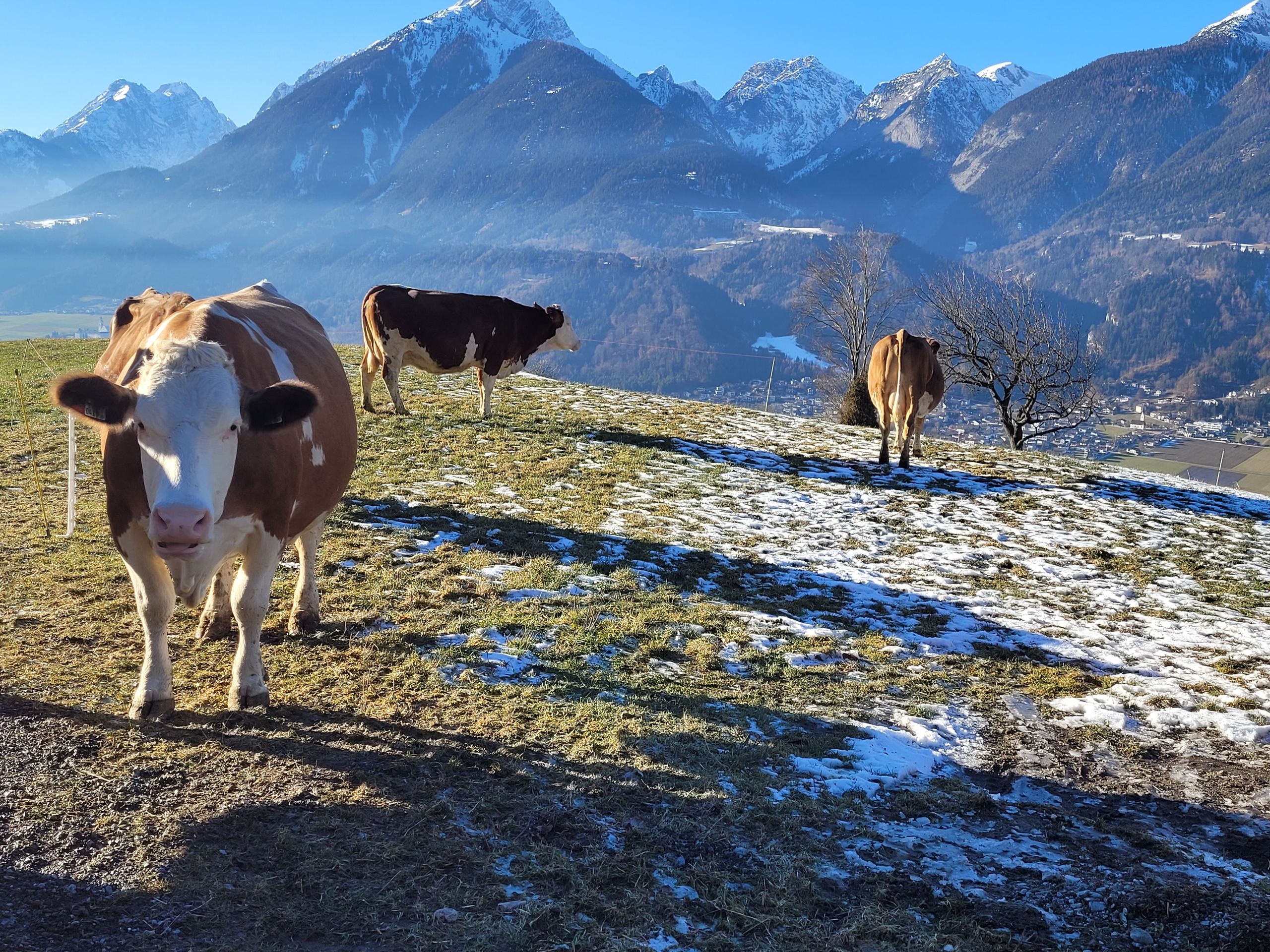 Beim Zuschauen lernt man unsere Kühe, Schweine, Hühner, Hasen und Meerschweinchen kennen und kann sehen woher die Milch für den Kakao und das Ei zum Frühstück kommt.