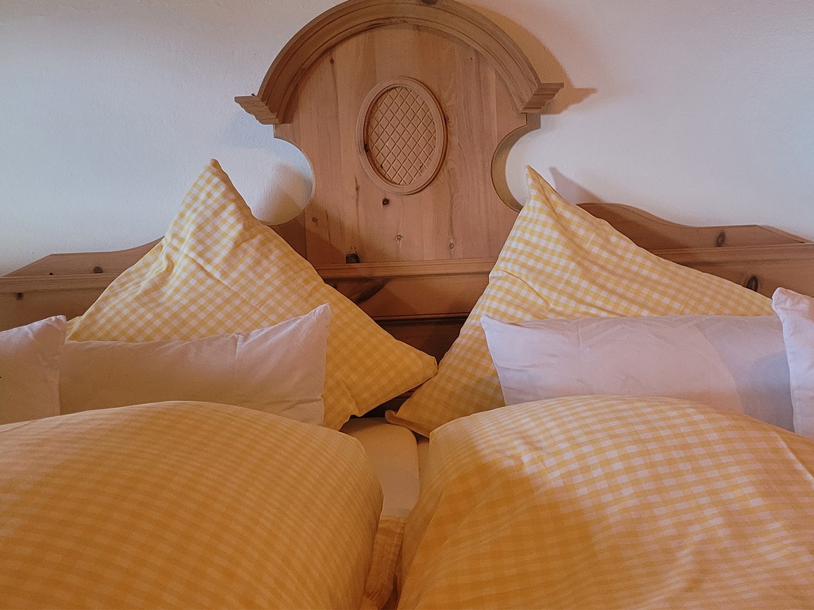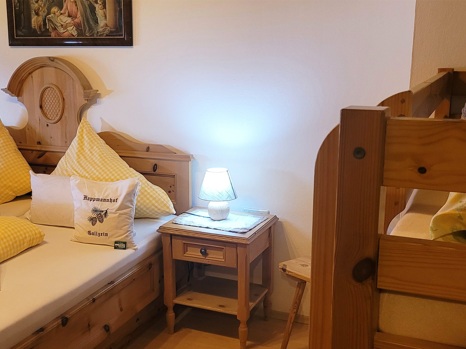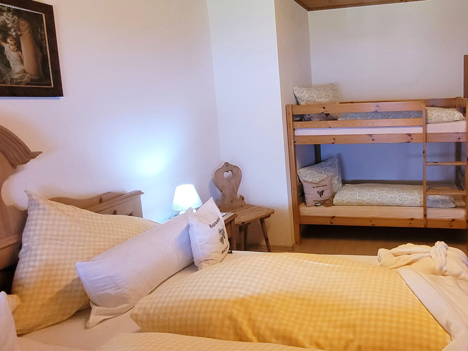 • Einem Schlafzimmer mit Zirbendoppelbett und Stockbett