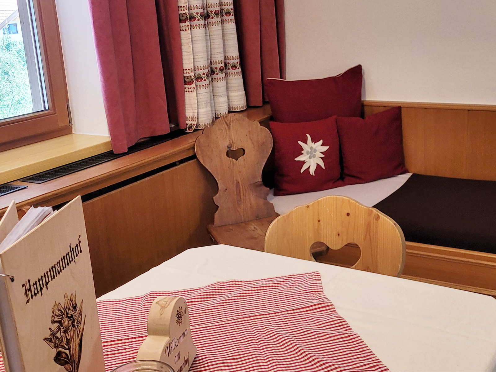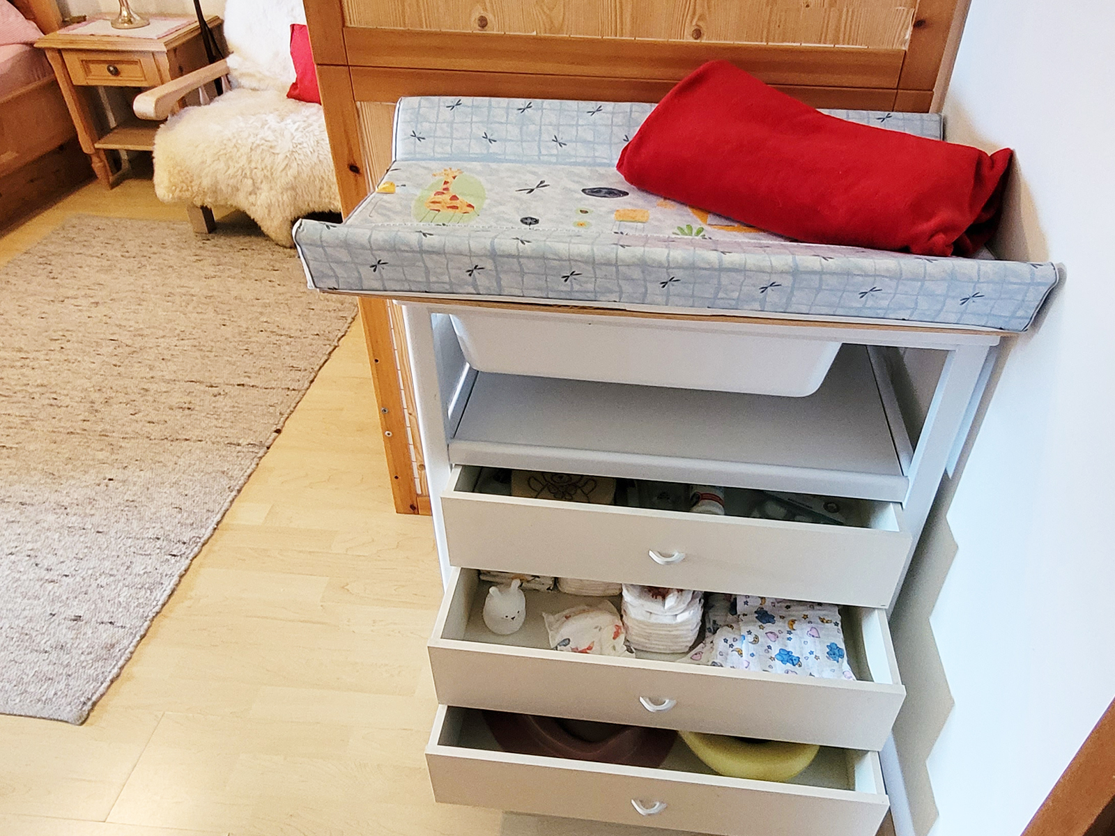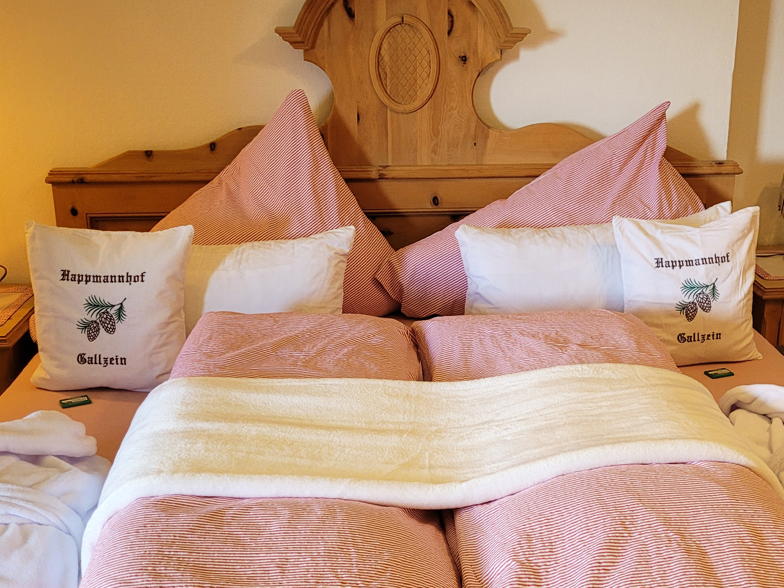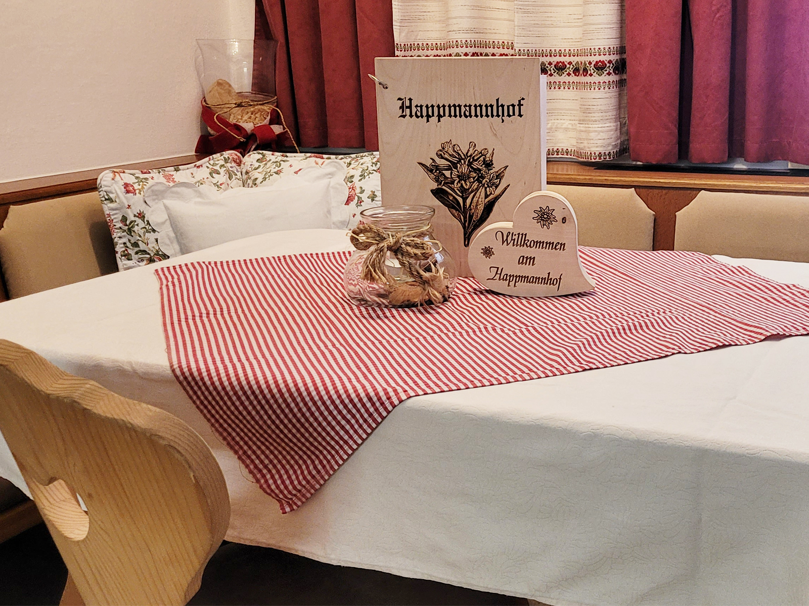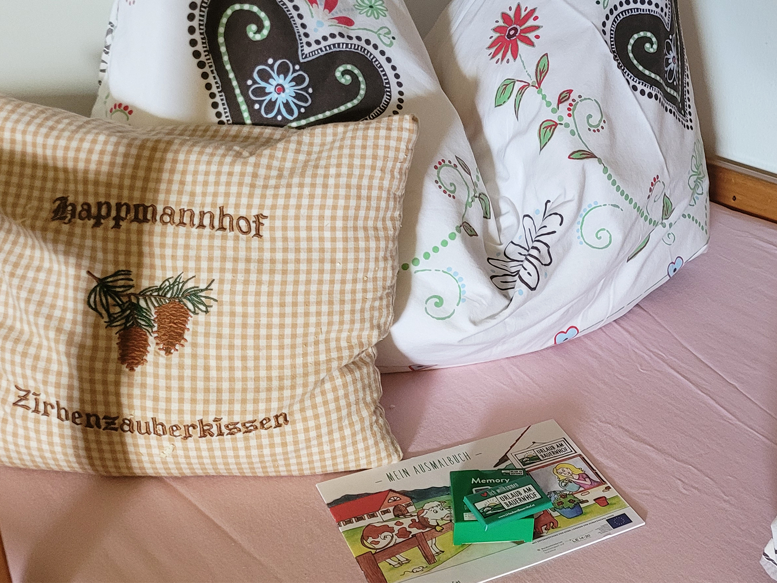 - Einem großen Schlafzimmer mit Zirbendoppelbett und Stockbett